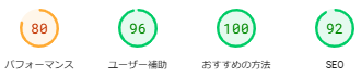 | 高速化機能を全てオフ (モバイル) | ![]() ![]() パフォーマンス:85 読み込み時間:4.9秒 | ![]() ![]() パフォーマンス:80 読み込み時間:5.1秒 |